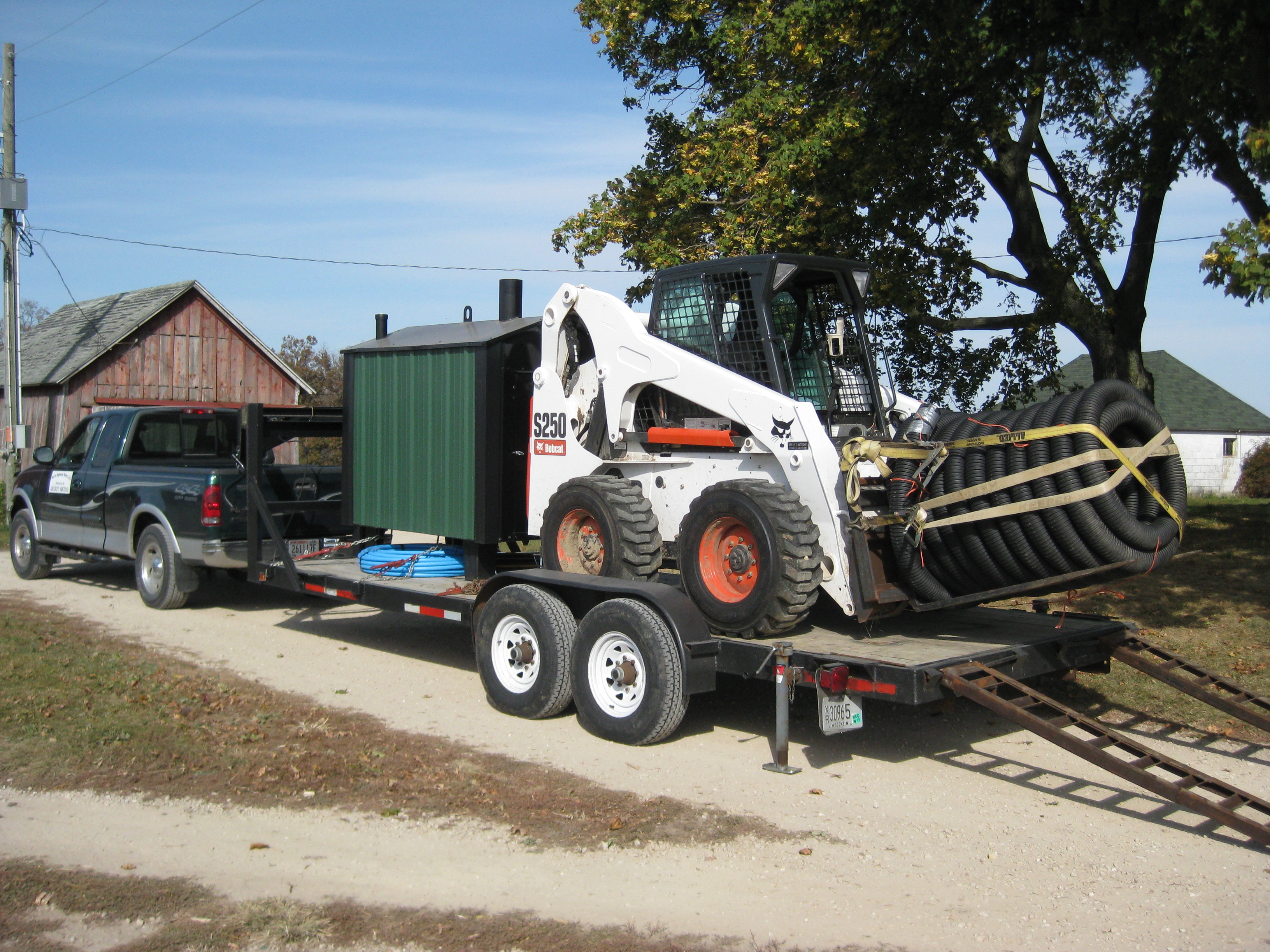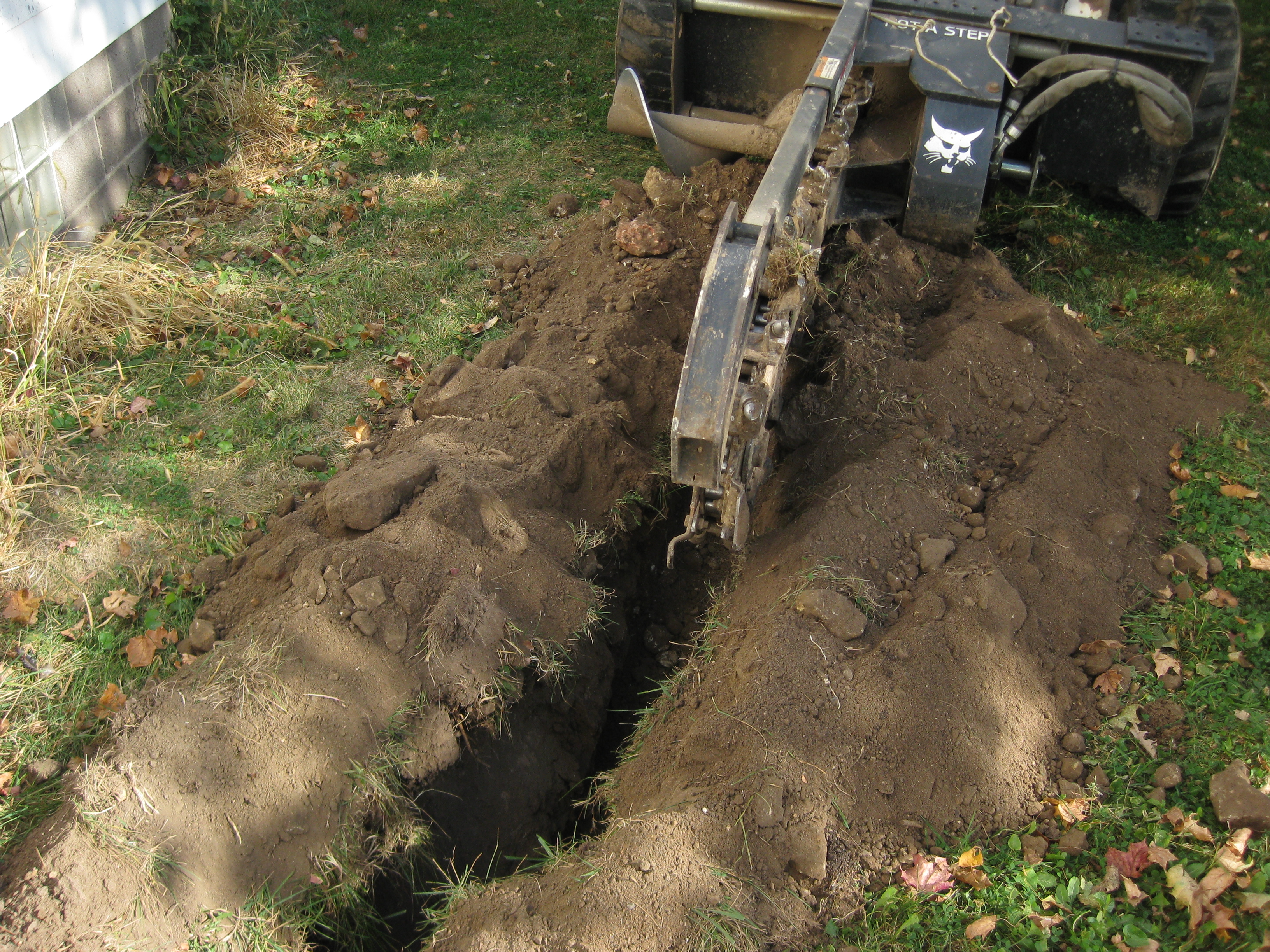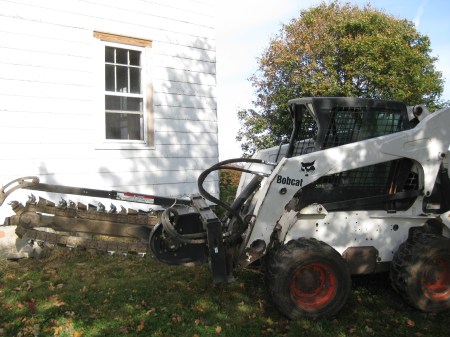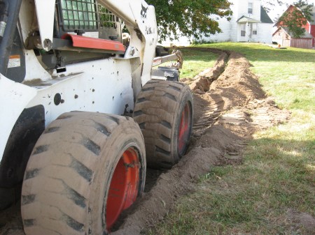 Then I had to dig a four foot deep trench for the water lines. I rented a bobcat with a trencher attatchment from K&L Bobcat.