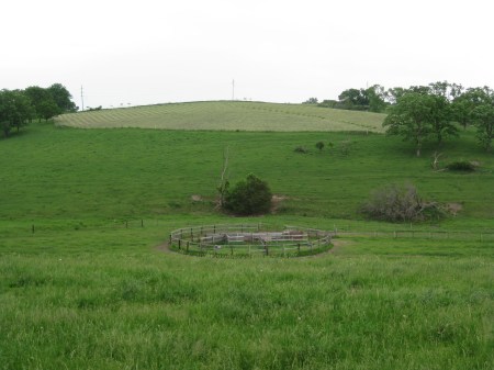 Ten acre field of mowed hay.  We mow around the outside edge of the field and work our way in, leaving concentric swaths of cut hay.