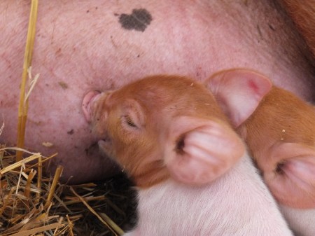 The Duroc breed is not considered good for mothering ability. There are some genetic lines within the breed, however, which have been selected for mothering ability. I’ve been selecting from within these genetic lines for a while.