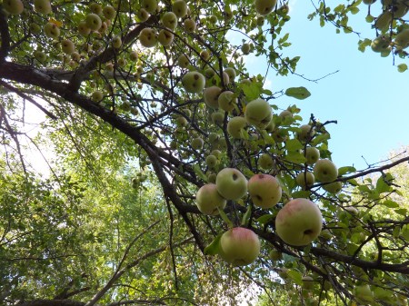 I usually eat a few every time I check the cows. Each tree’s apples taste different, but they’re all good in their own way.