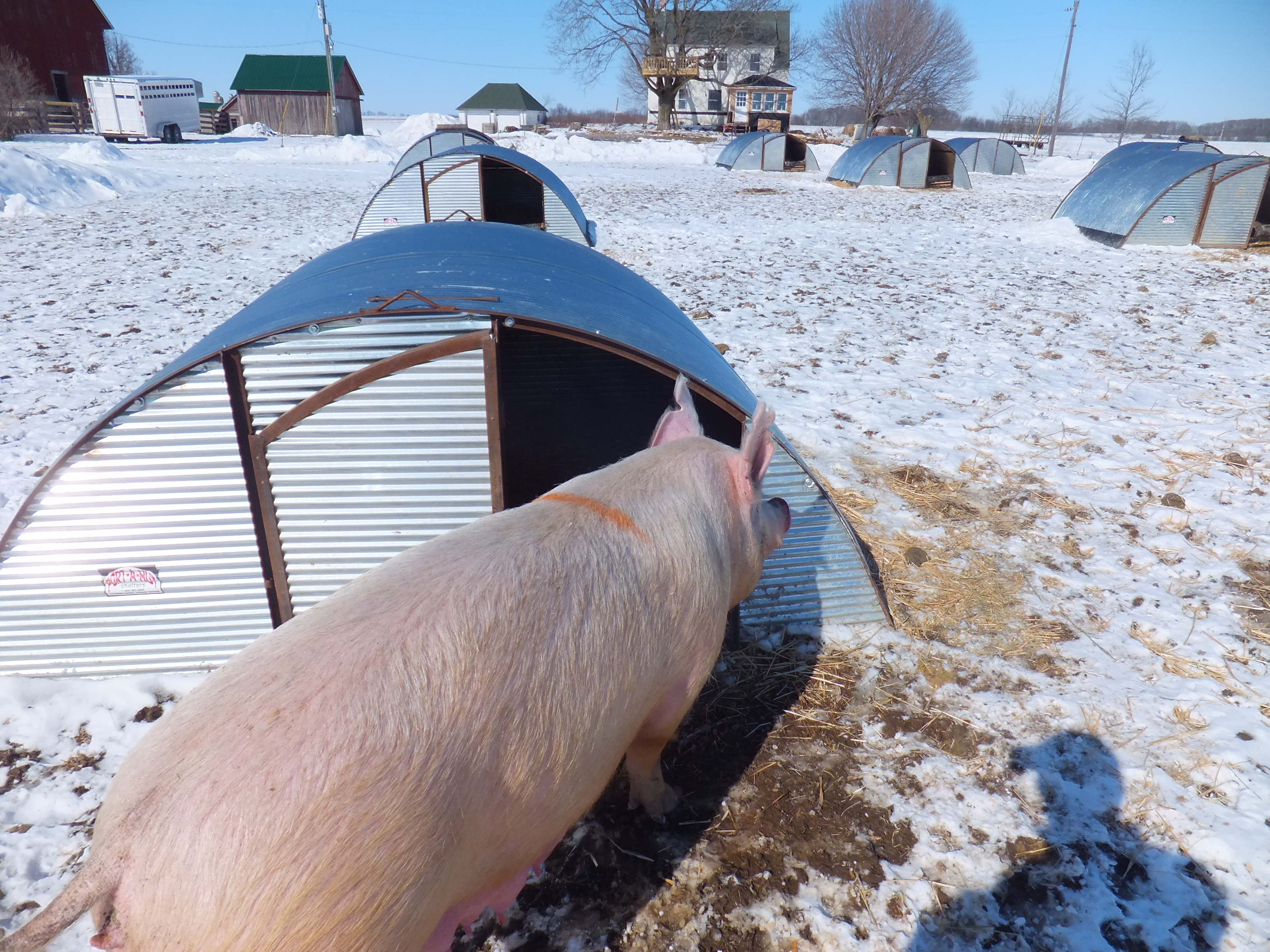 The litters are doing well.  Less than a handful of piglets have died after the first trouble.  I’m using more straw now instead of wood shavings for warmth and adding a couple of slices daily.