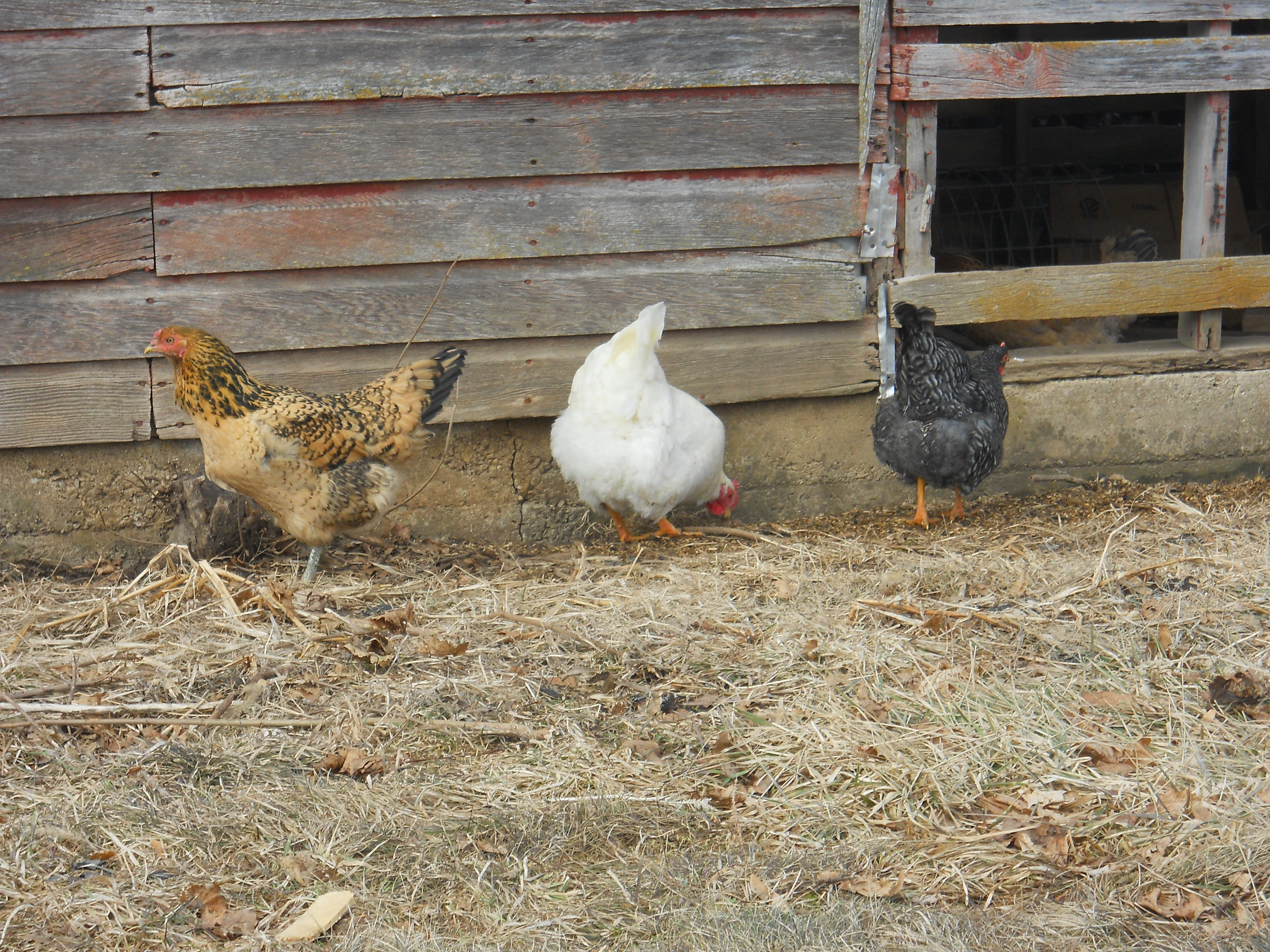 When the snow melted, I started letting them back outside in the daytime. The turkey really started to come into her own and express the urges she had felt all winter.