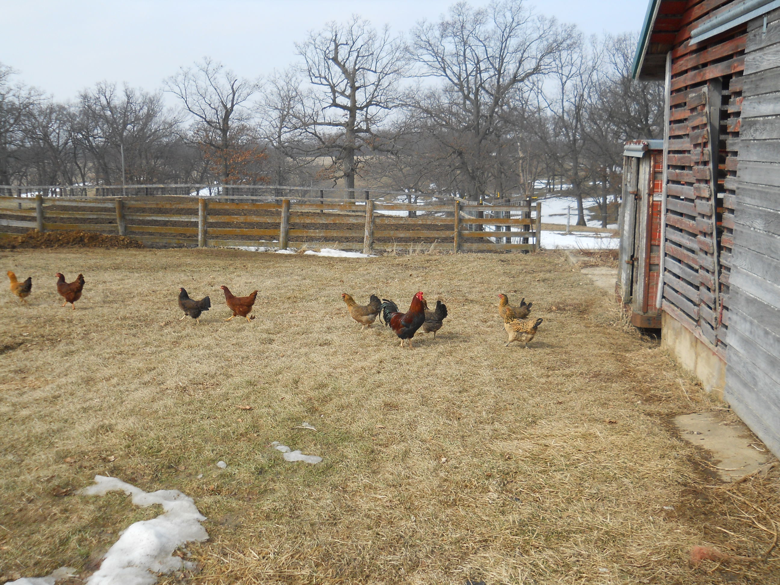 Once the snow came, I kept the chickens locked in the barn for the winter. I could tell the turkey was from wild stock because it was more skittish than the chickens.