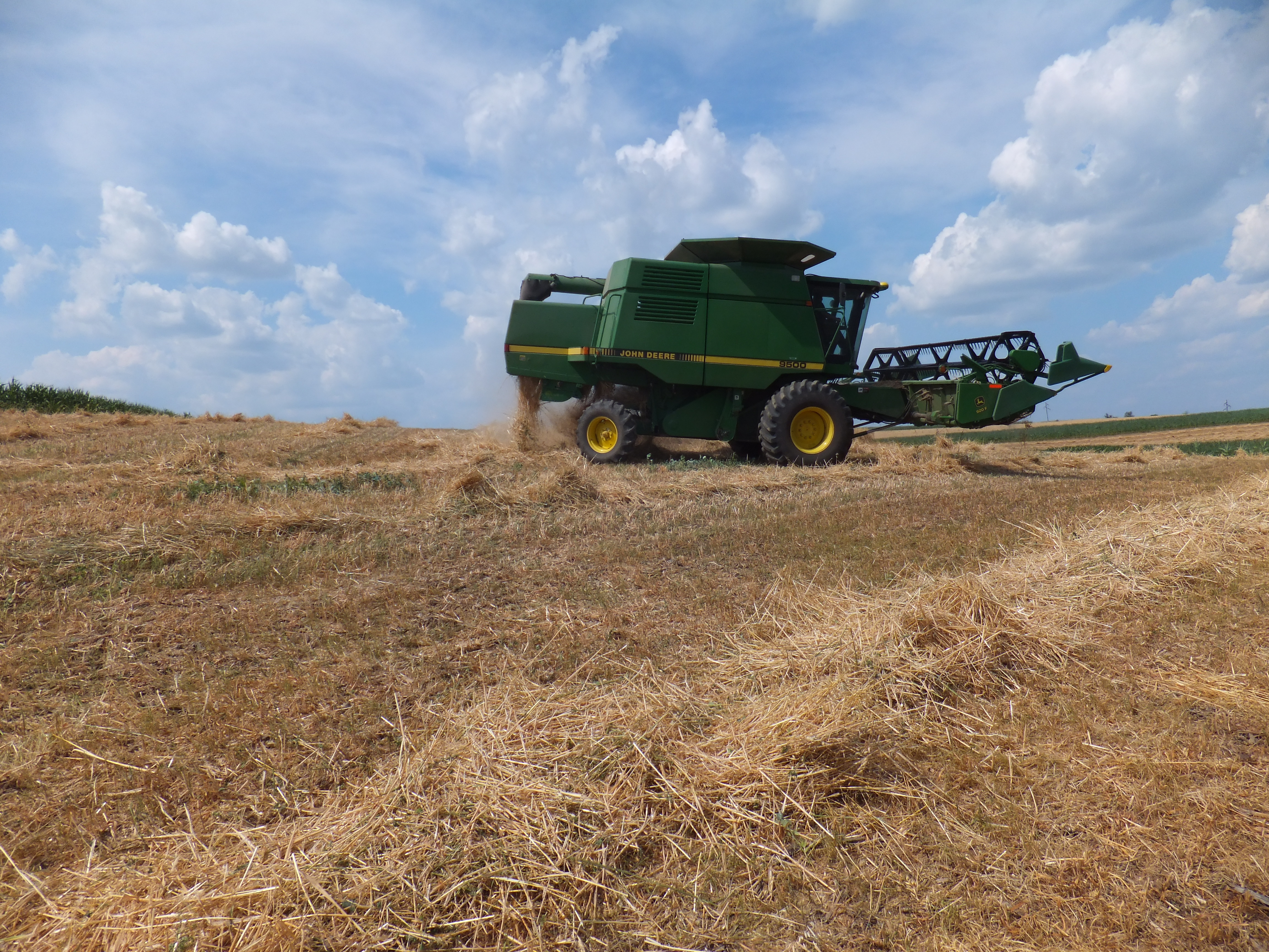 We finished corn harvest. The drought and high temperatures resulted in yields a third to a half of normal. That was on the best acres. We custom-hired a neighbor to chop the whole corn plant on the worst acres and make silage to feed to the cattle. Above you can see the machine which blows and packs the silage into a bag.