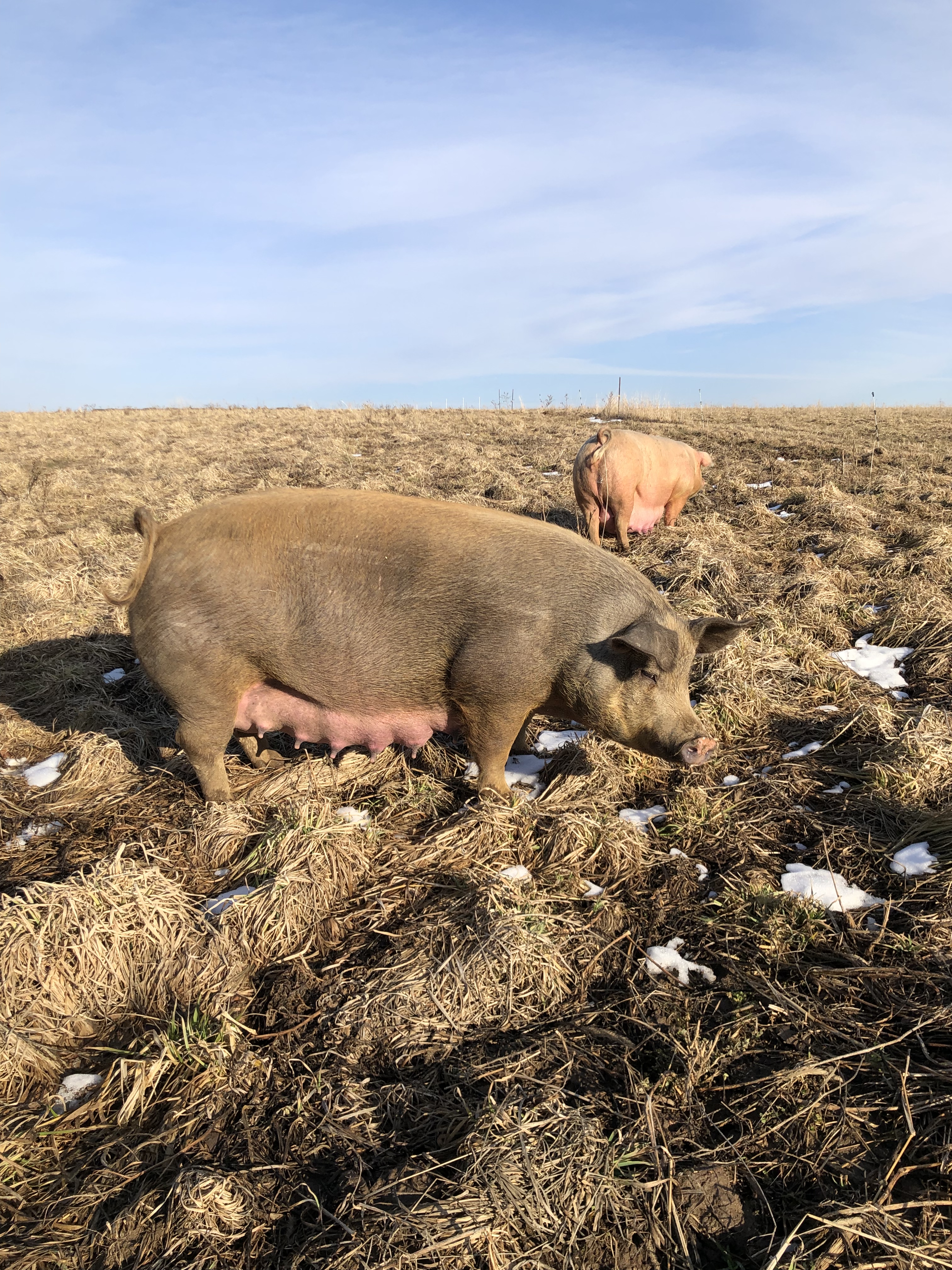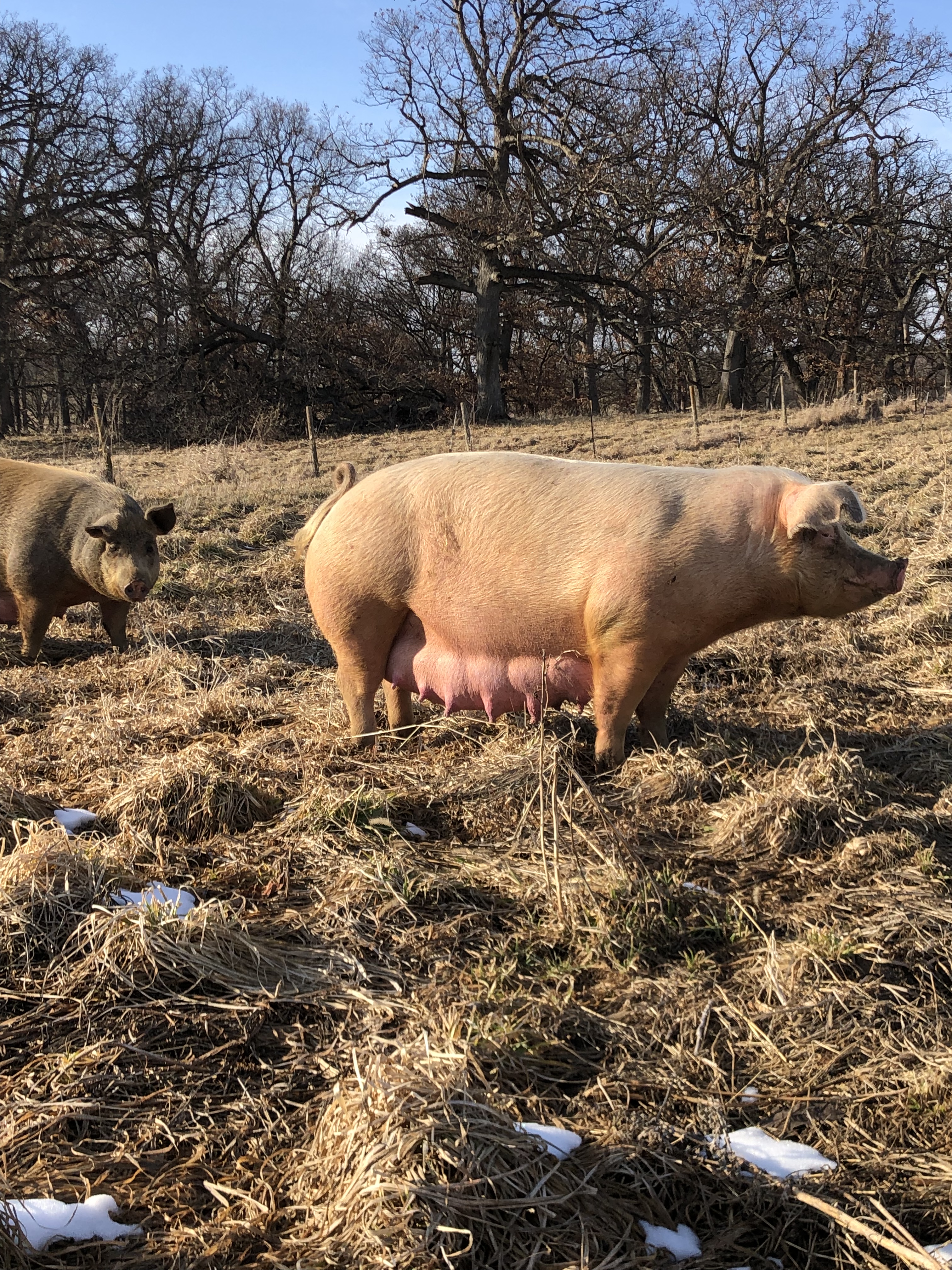 We are excited for a couple of litters ready to pop any day now. Hoping they avoid farrowing during the predicted winter storm Wed/Thurs, but probably will, as a dropping barometer tends to induce labor.