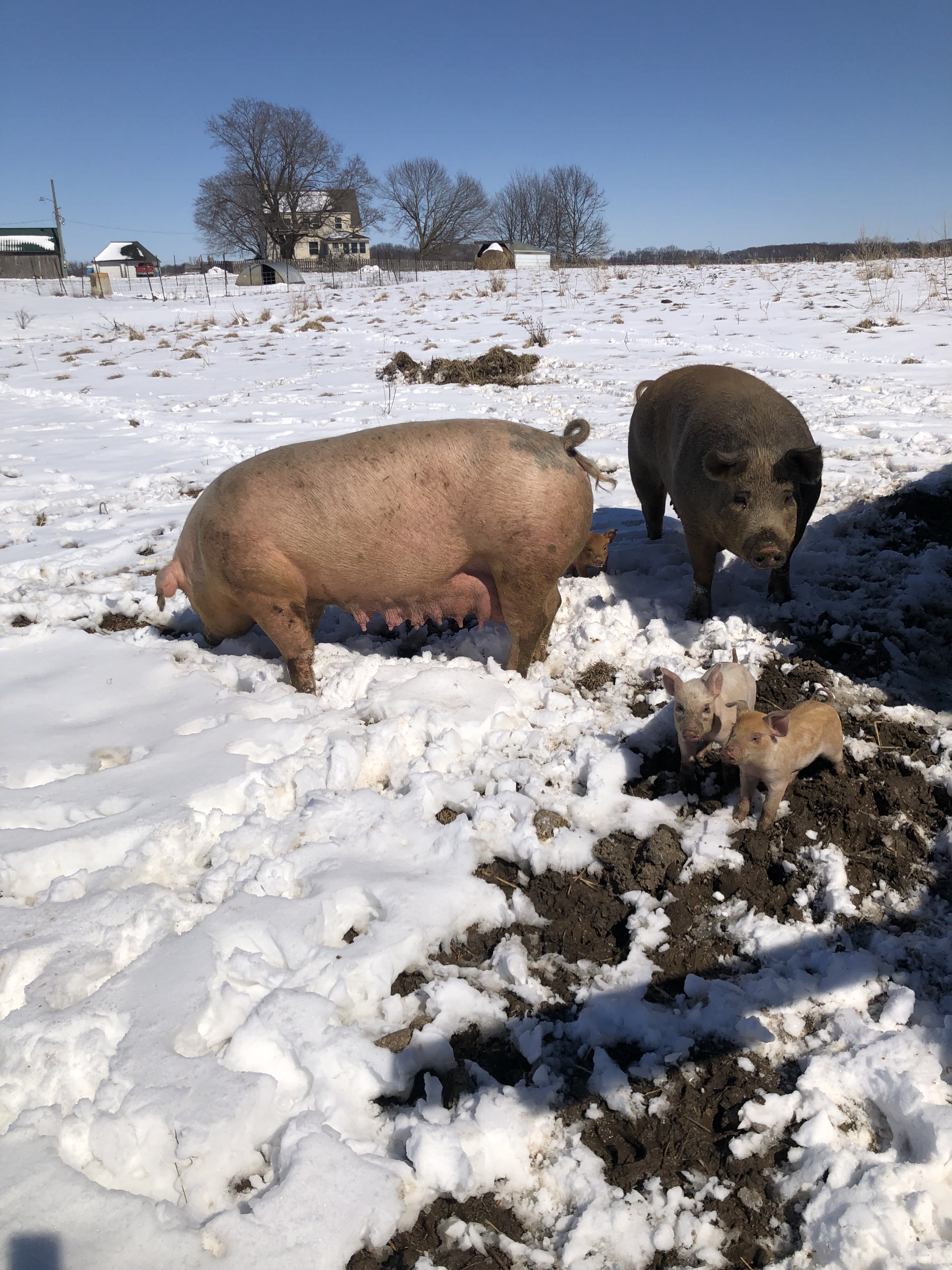 Had a couple of nice litters in November before it turned quite cold. The hardiness of the piglets is still amazing to me. In this photo the piglets are a week old. The temperature is below freezing.