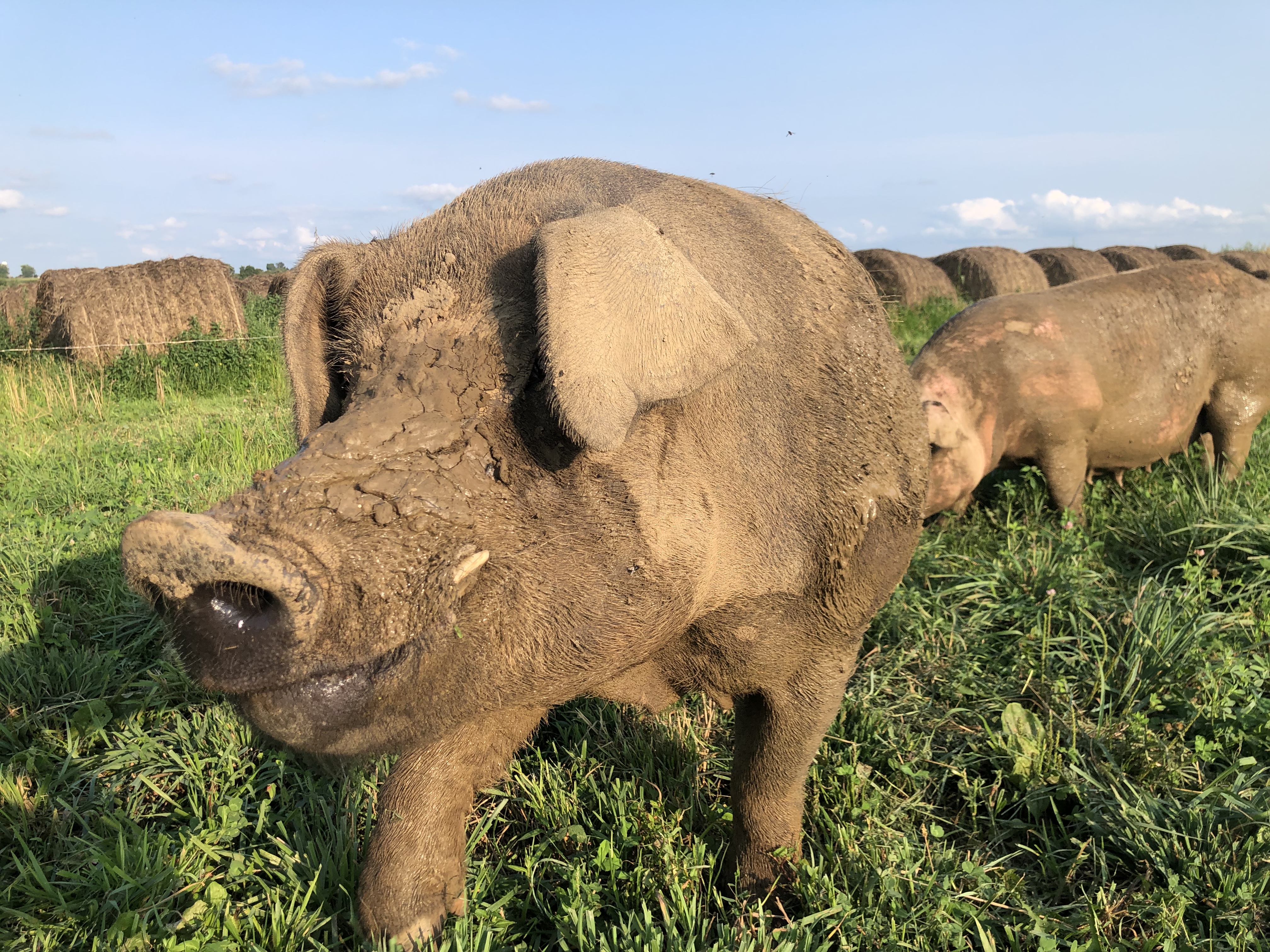 On the hoof at our farm. Other, much larger farms, don’t have the flexibility of space, and farmers have euthanized their pigs and chickens as a last resort due to complications from Covid-19.