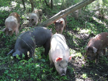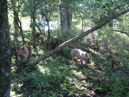 I felt like Dian Fossey, the first time she observed gorillas in the wild. Hogs like hoop buildings and alfalfa/grass pastures, but they love the woods.