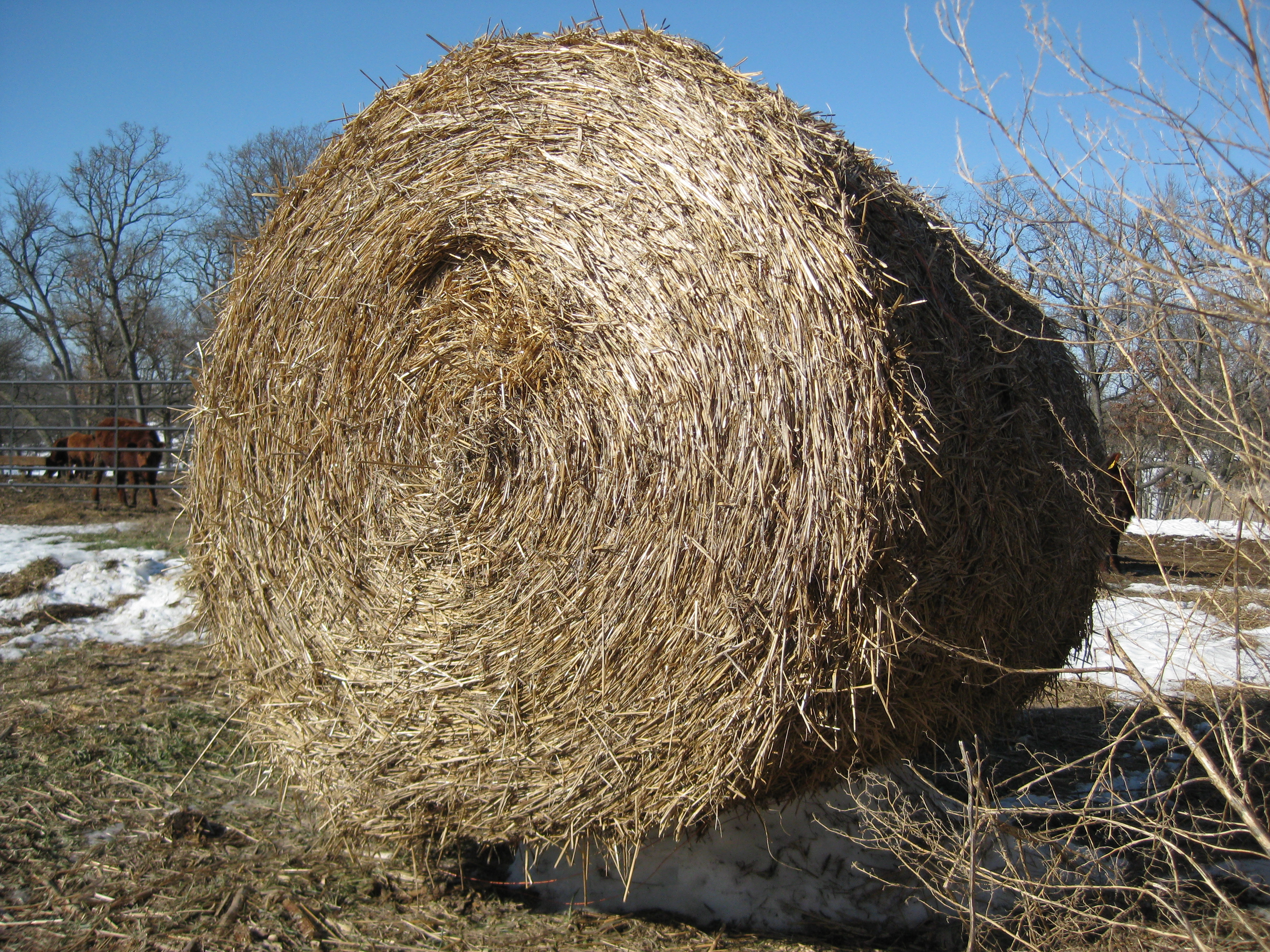 February 20, 2011I set this round bale of straw down after the big snow. We had a big melt this past week and all the snow around it melted, leaving the bale sitting on its own block of ice. It got me to thinking about the insulating properties of straw.